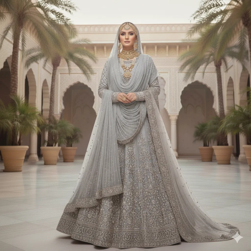The biggest 2026 trend is the double-dupatta bridal look — pairing a lehenga with two coordinating dupattas worn at different heights for a layered, regal effect. This fashion and style choice has gone viral in the US Muslim bridal community and is among our most-searched categories.