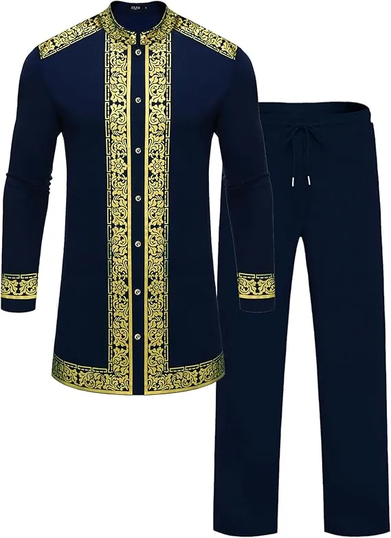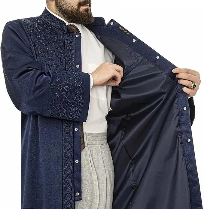 To shop these items on Amazon.com, click the pictures.Go classic with a sherwani or look like a king in our navy thobe and jutti. This collection of Islamic nikah dress for grooms enhances your personal style and the overall aesthetic of the Islamic nikah, especially if the bride is wearing blue and gold. To showcase cultural influences, you can accessorize with statement pieces, such as a gold turban, to highlight the rich blue hue of the dress. We ensure that you feel comfortable, confident and stylish in this formal wear.