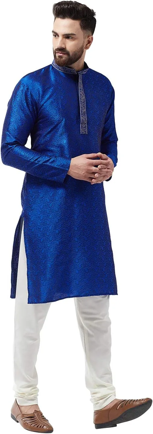Purchase on Amazon.comThis Islamic nikah dress for grooms collection features traditional attire with cultural indluences and modern formal wear. The groom can match his bride perfectly using this blue collection, designed to be comfortable and reflect personal style. This Islamic nikah dress for grooms is perfect for a blue Muslim wedding, ensuring that the groom stands out at the wedding venue. The collection includes a finely tailored dishdasha, sherwanis and kurta sets, all lovely choices for the US Islamic community.