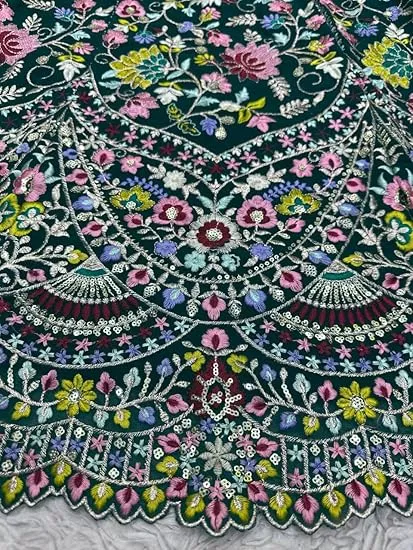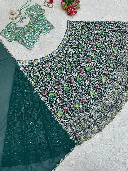 Purchase on Amazon.comUse this AI inspiration to achieve a stunning Green Muslim lehenga on your wedding day with this heavily embroidered ensemble that prioritizes modesty without compromising on personal style.
