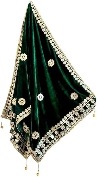Purchase on Amazon.comThis Green Velvet Dupatta showcases vibrant patterns and designs on soft velvet fabric. The generous length and width are designed for diverse bridal wearing styles.