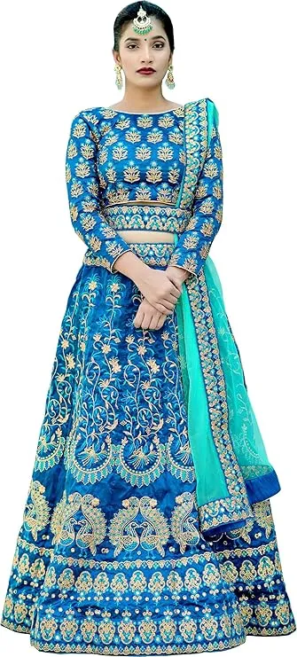 Inspiration: This AI-visualized look demonstrates how you can achieve a Muslim lehenga. Add hijab, then order the lehenga in Blue on Amazon in Blue: https://amzn.to/3M6vipZ Two will give a tailor enough fabric to create the look. Or create your own hip length choli. Scroll down for our free sewing pattern. This Muslim lehenga features a stunning combination of blue and aqua, making it a timeless bridal statement. Crafted in luxurious silk, this customizable lehenga allows you to adjust the blouse to a hip length, ensuring it aligns perfectly with modest fashion principles. Available in sizes up to 42' with a skirt length of 45', this lehenga comes with an unstitched blouse measuring .80 meters, providing you with the flexibility to tailor it to your preferences.