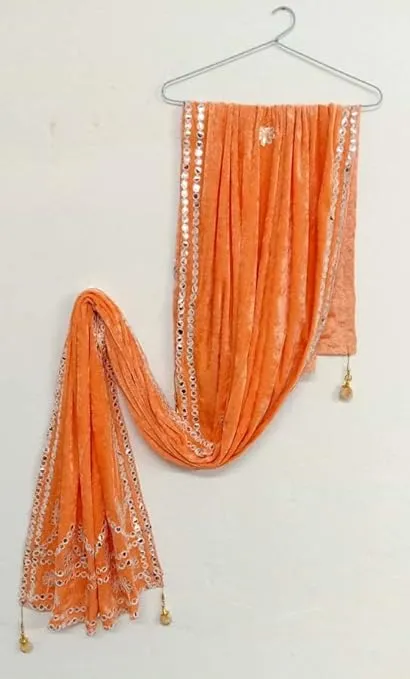 Yes. Velvet dupattas are widely used in Pakistani bridal wear, particularly for winter weddings and indoor ceremonies where the richness of the luxury fabric photographs beautifully under event lighting. The peach colorway is especially traditional in Pakistani bridal wear and pairs well with gold jewelry, maroon or contrasting lehenga sets with Islamic customizable options, and traditional designs on heavy embroidery bridal outfits. It also translates well to Indian wedding fashion aesthetics, making it a versatile choice for brides whose style bridges both South Asian fashion traditions.